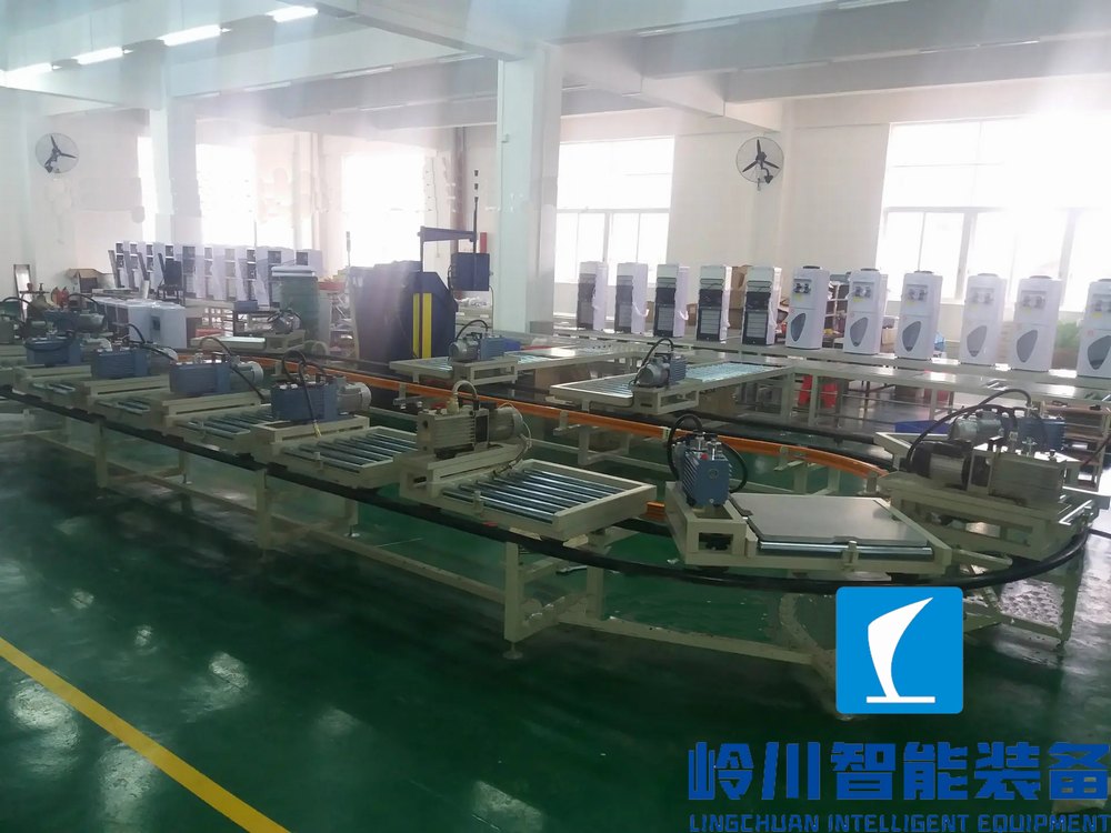 嶺川飲水機(jī)生產(chǎn)流水線系統(tǒng)----飲水機(jī)生產(chǎn)流水線輸送系統(tǒng)---環(huán)形抽真空流水線